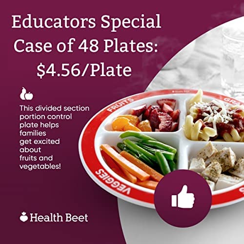 Choose MyPlate Portion Plate for Kids, Toddlers - Kids Nutrition Plates with Dividers from Health Beet (case of 48 plates) English language)