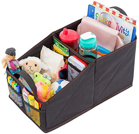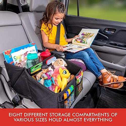 This is amazing! It fits perfectly between my two kids car seats and it holds everything they need for a long trip. It has multiple mesh pockets, and large areas for storing bigger items. I used the front section for snacks and drinks and the back for books, markers, white boards. It worked perfect for me. The kids can grab what they need during the drive without assistance and put it right back without fishing the seat for a easily re-accessible spot! And the best part.. when it's not in use or if you need to clear a spot for another passenger, it folds up and can go right back in the box! Super easy! MUST HAVE if you have long drives with kids or just want to keep kids activities in the car! Lovveee this! Read more